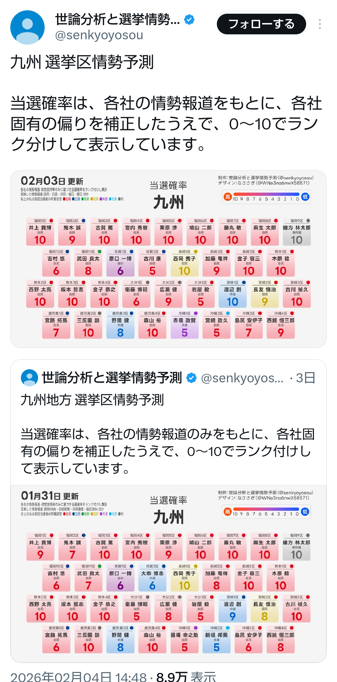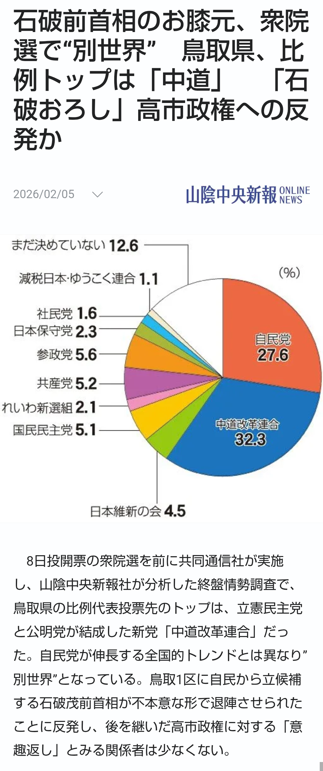| … | 20無題Name名無し 26/02/03(火)21:19:25No.776860+>衆院選比例 島根は自民、鳥取は中道トップ 本社世論調査詳報 |