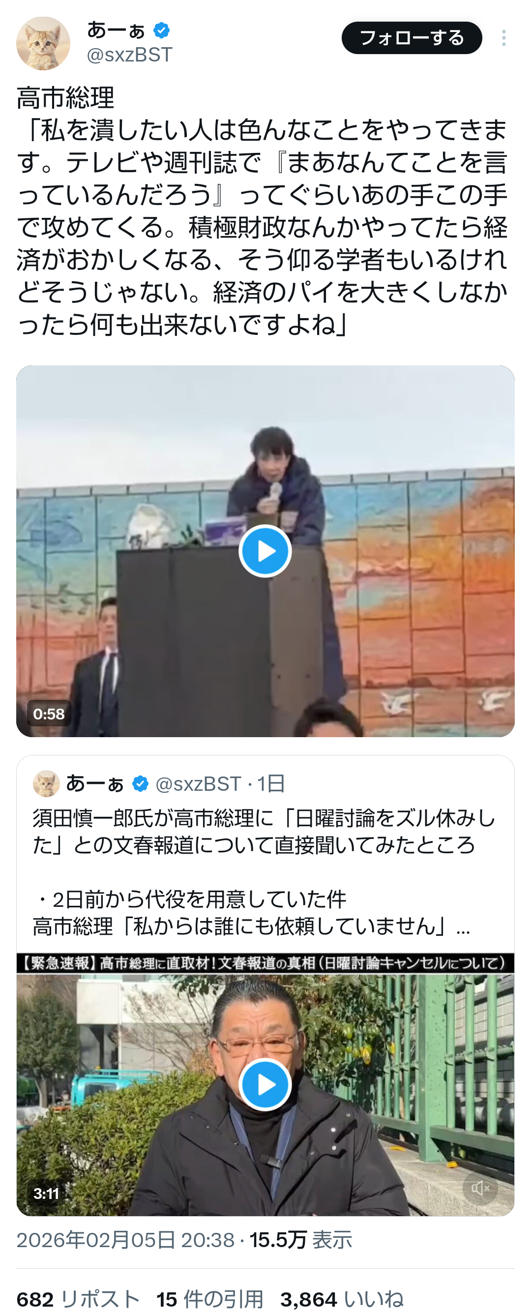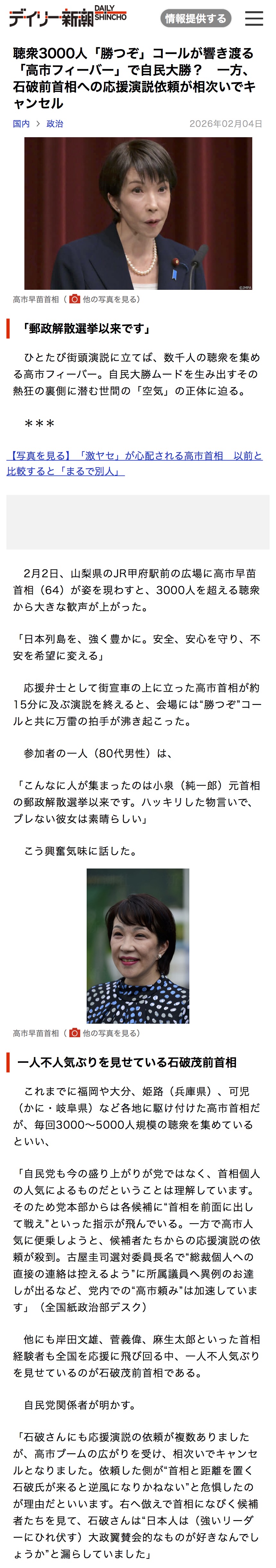 | … | 25無題Name名無し 26/02/03(火)21:35:39No.776865+>《衝撃スクープ》高市首相がNHK「日曜討論」出演キャンセルを2日前から準備していた! | 文春オンライン |