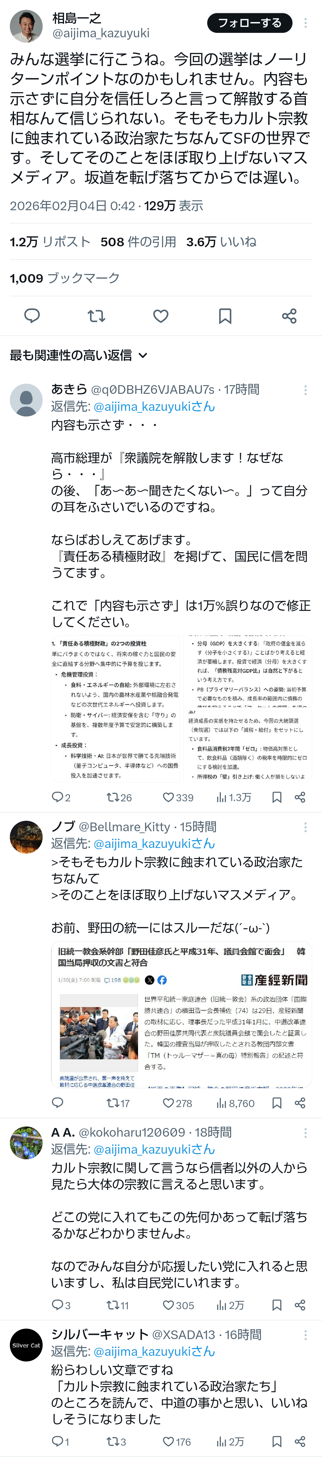 | … | 58無題Name名無し 26/02/03(火)22:39:30No.776902+結局これが本当に嘘でもそれでも野党よりマシなんだよね… |