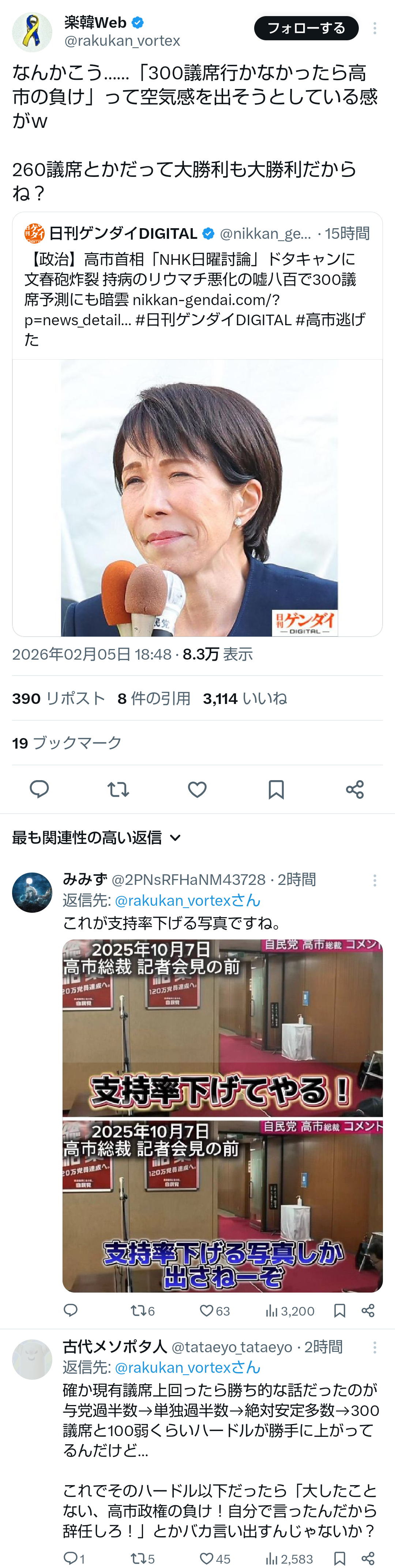 | … | 618無題Name名無し 26/02/06(金)15:44:21No.777592+>反高市の岸田人気高まる |