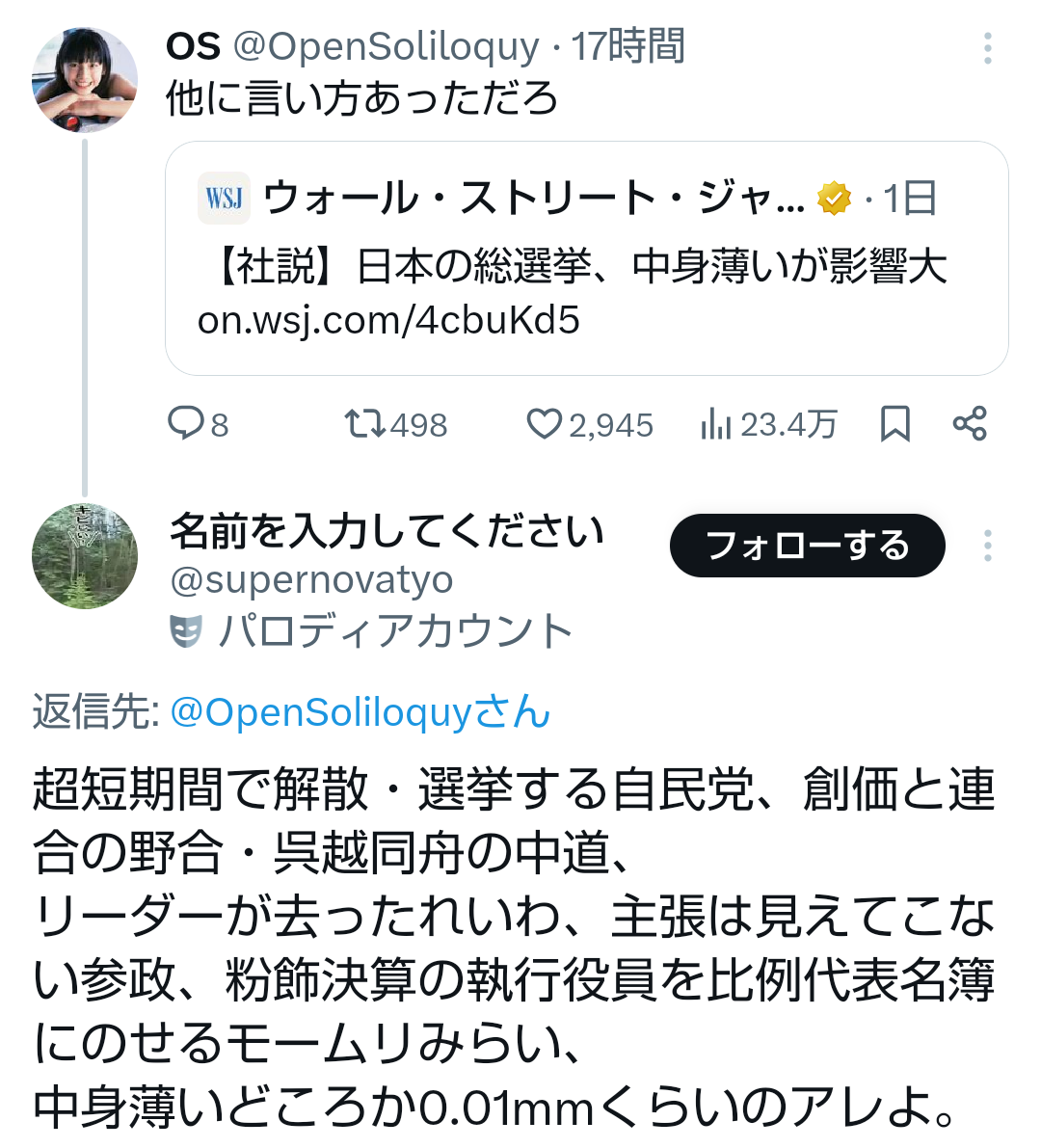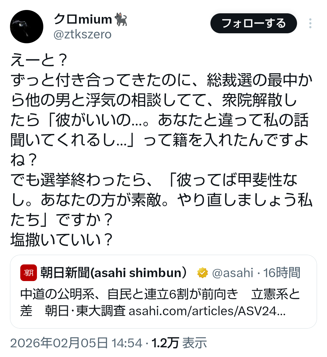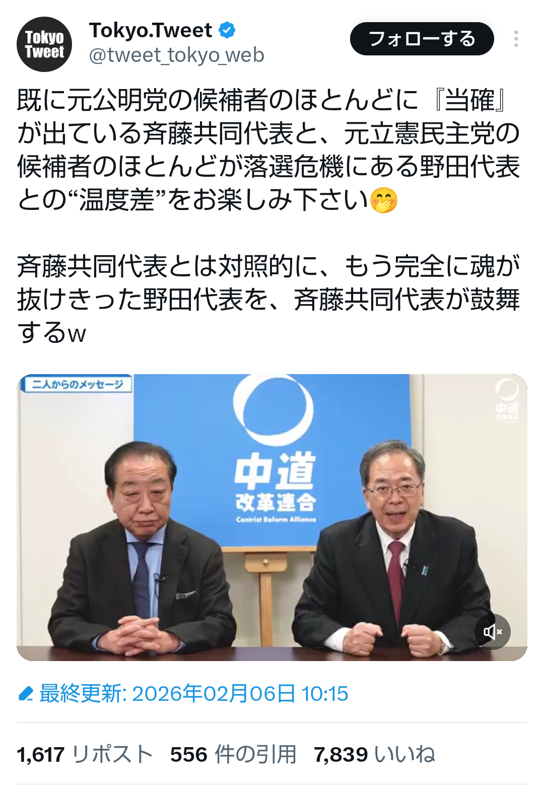 | … | 609無題Name名無し 26/02/06(金)15:14:37No.777583+>「右も左も揃ってますおいでませ中道」でイケると思ったんだろ |