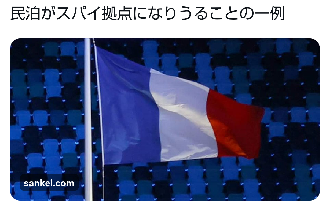 | … | 641無題Name名無し 26/02/06(金)17:42:11No.777615+ 1770367331441.png-(560768 B) >仏当局が中国人2人をスパイ容疑で逮捕 民泊にパラボラ設置、軍事情報を本国に送信か |