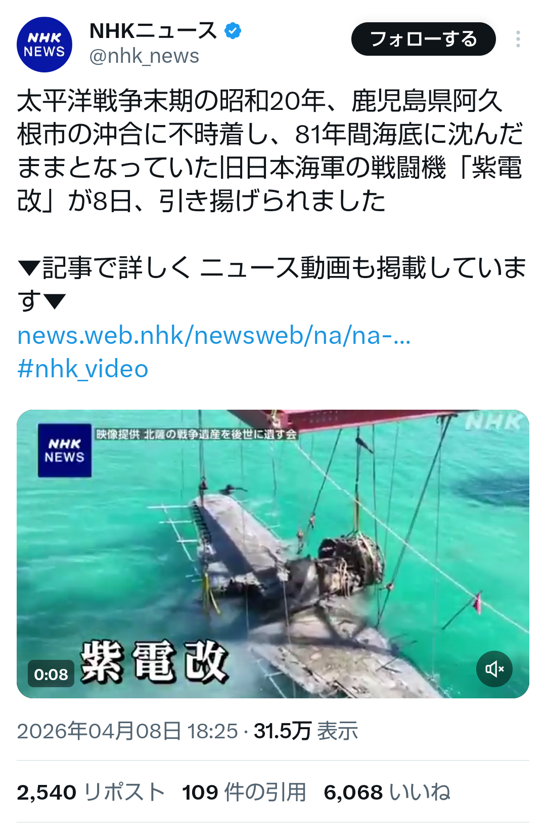 | … | 5無題Name名無し 26/04/08(水)22:45:02No.791271+ 1775655902120.jpg-(1369978 B) 紫電改のタカしか知らない |