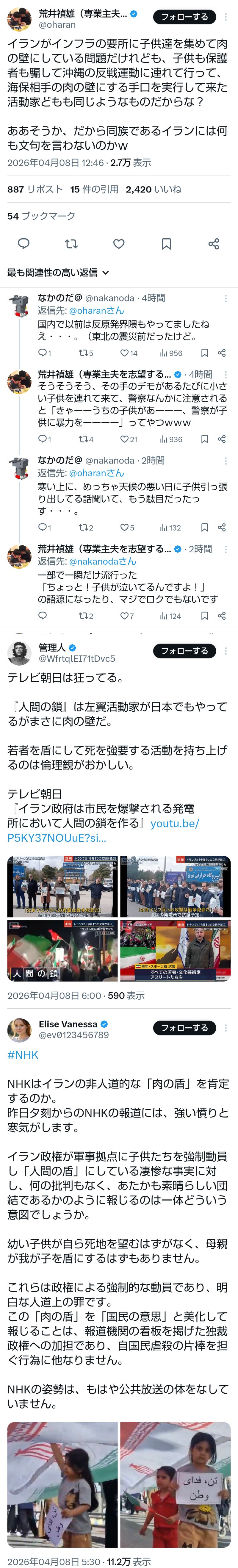 | … | 68無題Name名無し 26/04/09(木)12:20:32No.791351そうだねx3肉の盾がイランの印象悪化に繋がってしまうと考えるか |