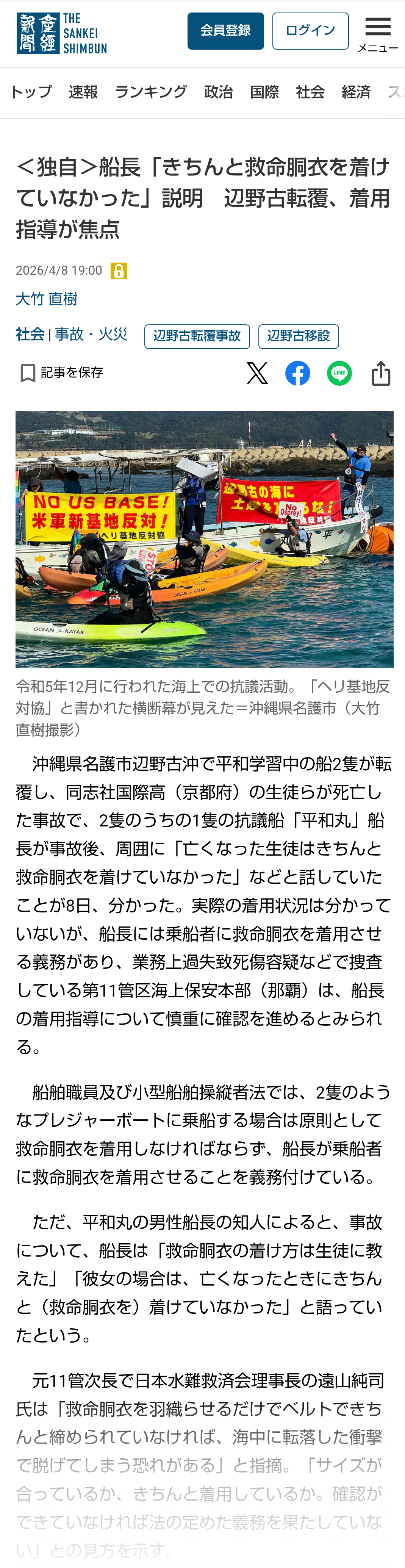 | … | 167無題Name名無し 26/04/10(金)00:21:48No.791475そうだねx4>>亡くなった女子生徒が乗っていた「平和丸」を巡っては、令和5年12月に行われた移設反対を訴える海上抗議活動で「デニー知事と共に頑張る」と書かれた垂れ幕が掲げられていたことも確認されている。オール沖縄関係者は「事故が(玉城)知事の心配事の一つになっているだろう」と推察する。 |