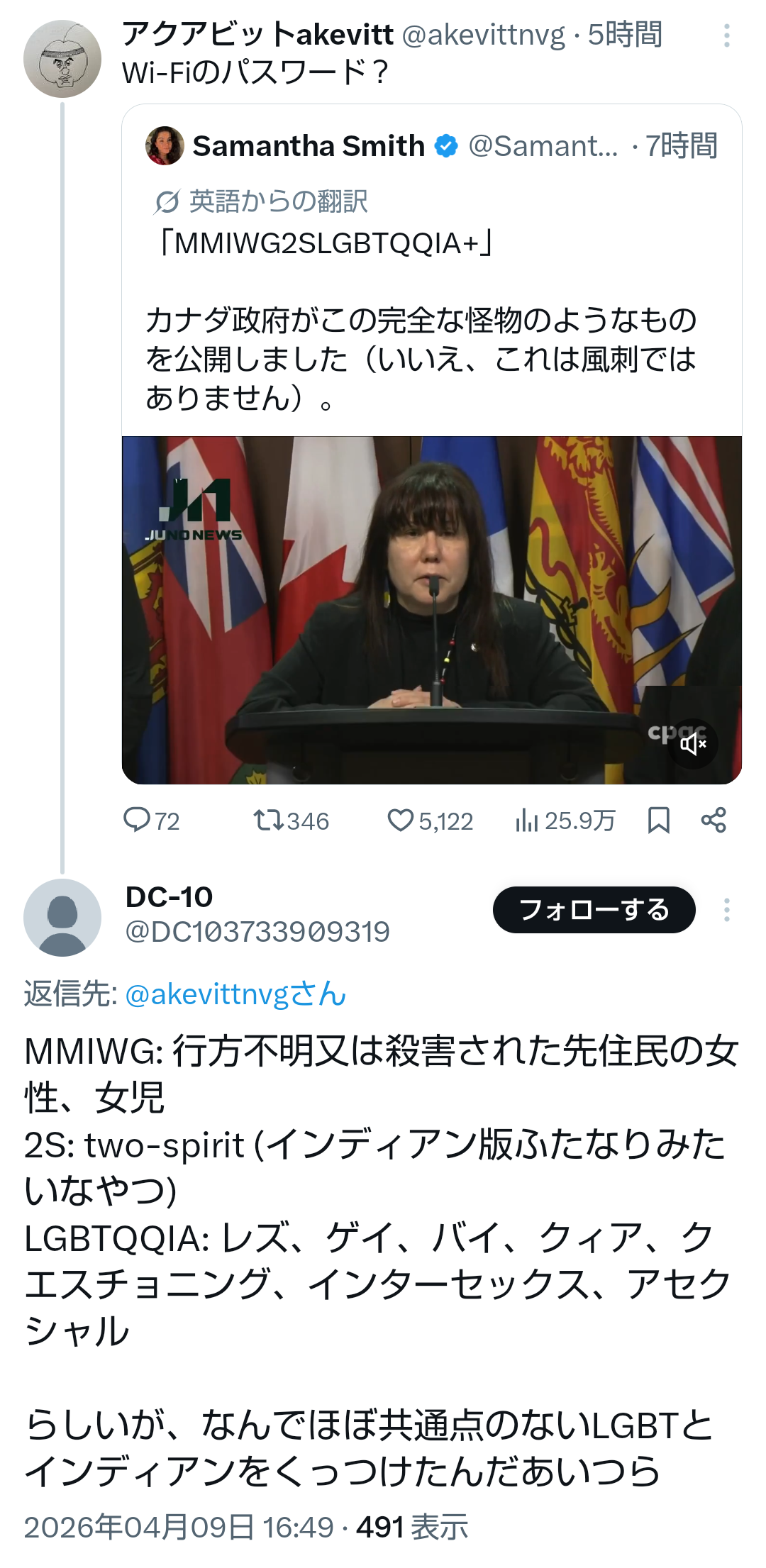 | … | 110無題Name名無し 26/04/09(木)17:43:48No.791413+ 1775724228119.png-(718838 B) >MMIWG: 行方不明又は殺害された先住民の女性、女児 |