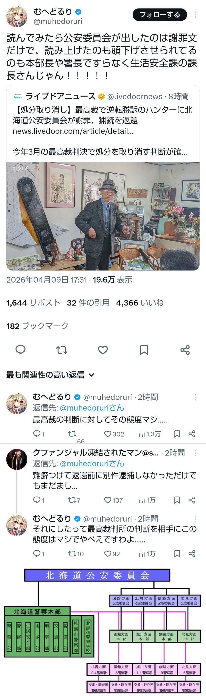 | … | 126無題Name名無し 26/04/09(木)20:15:14No.791432+ 1775733314583.jpg-(342857 B) >【処分取り消し】最高裁で逆転勝訴のハンターに北海道公安委員会が謝罪、猟銃を返還 |