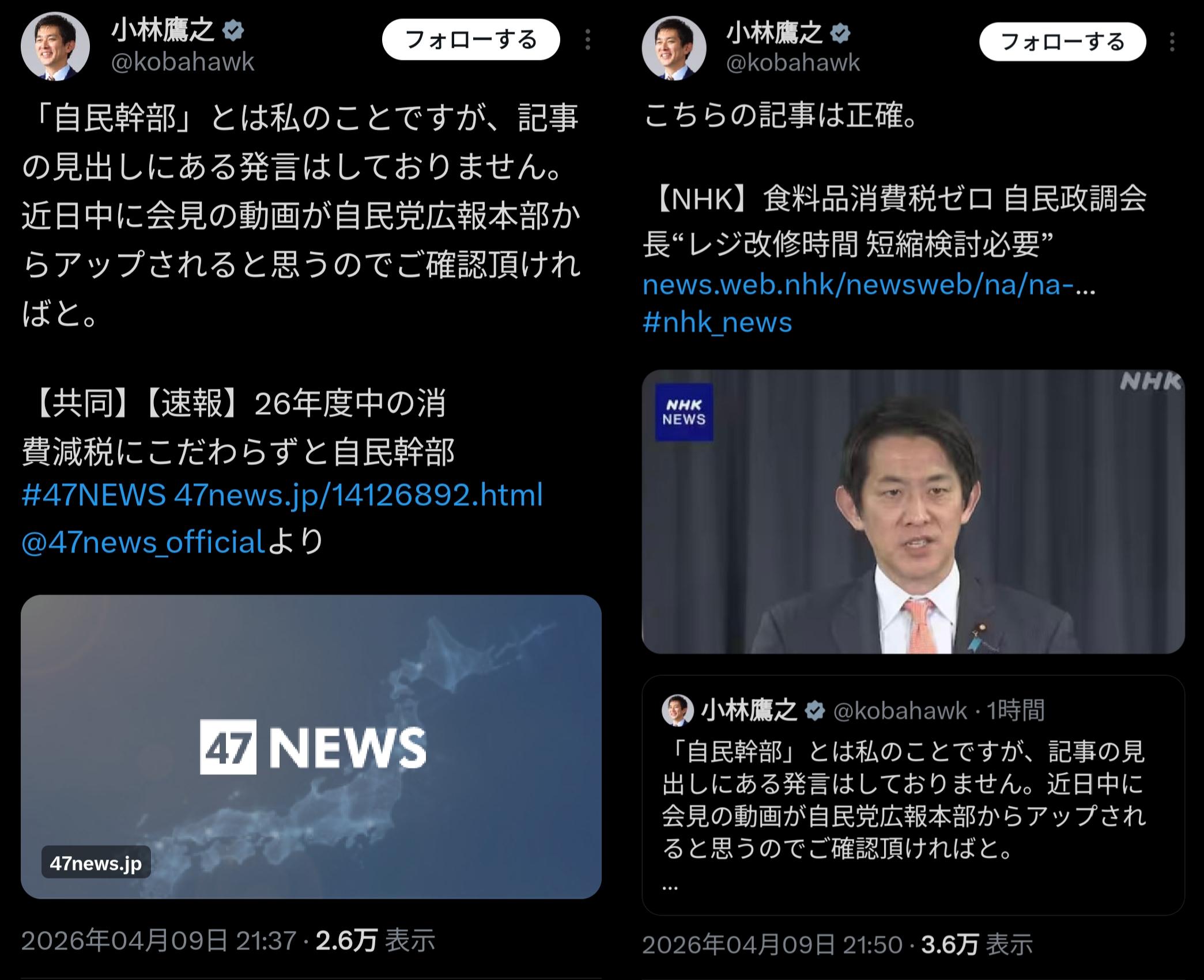 | … | 143無題Name名無し 26/04/09(木)22:59:15No.791450+高市さんと官房長官は名指しはしなかったけど小林鷹之は名指ししてて笑ったぞ |