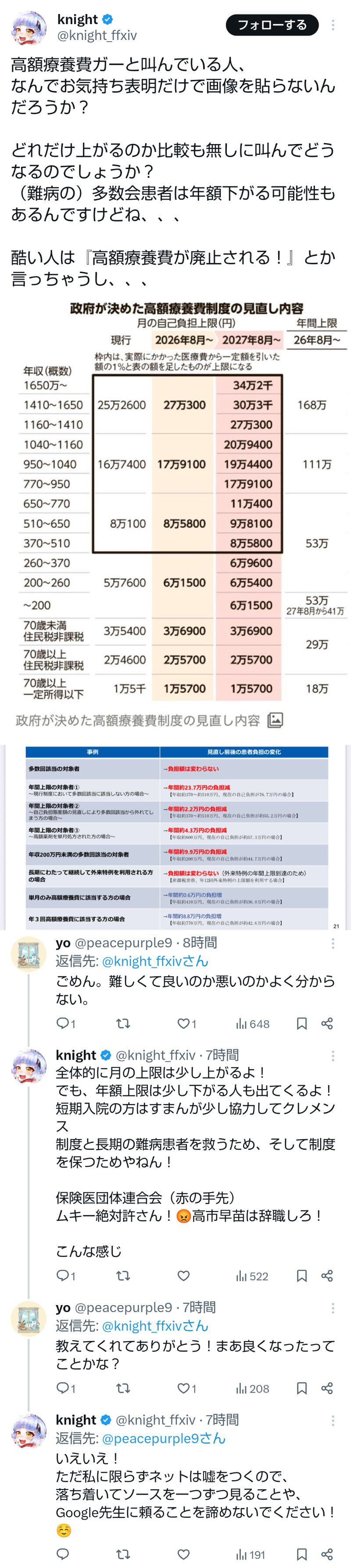 | … | 183無題Name名無し 26/04/10(金)10:37:25No.791503+>高額療養費の話は上限ができるので長期の治療が必要な人は下がるってのを知らなかった |