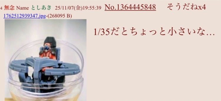 | … | 871無題Name名無し 25/11/08(土)18:05:17 IP:222.9.*(commufa.jp)No.3994904そうだねx2 1762592717855.jpg-(990881 B) カプセルコクピットのガチャ版を回してきました |